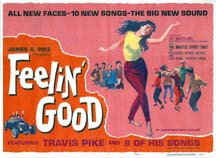 Travis had reconstructive surgery on his ankle, and wrote songs for the Five Beats while at Chelsea Naval Hospital, anticipating a return to Germany. Buoyed by the success of Demo Derby that played on screens across the US with the Beatles Hard Day�s Night, and the praise of New York tunesmiths� for Travis� songs, Jim Pike decided to make his rock musical comedy, Feelin� Good, with Travis performing 8 of his songs recorded with the Brattle Street East. Click image (left), to view TOPIC.