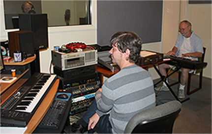 Session photo | Travis and Adam Pike (standing), and David Pinto (seated). |