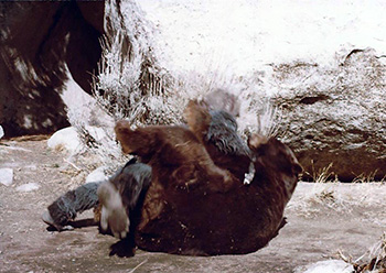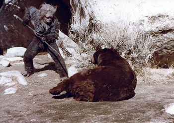Don, it's just a damn donut! Let the bear have it. There are plenty more in the coach. Oh, no, no, no! Do not poke the bear with a pointy stick! Hey, is anyone watching this? Can I get a camera over here?