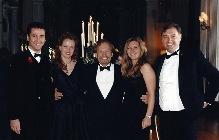 While I'm conveniently at the end of the table, it's time for a photo with my friends from the British Film Commission. On my right (left in the photo), is luv'ly Central England Screen Commissioner Cathie Peloe, (who, with GRUMPUSS under her belt, will now be working diligently to assure that MORNINGSTONE eventually films in Central England), and on her right (far left), is her friend David Robey, manager of local BBC Radio Station WM (unprecedented winner of SONY Awards for two consecutive years). On my left is Elizabeth Kaniewska, who speaks Polish, English, French, Welsh and holds a degree in Media and Business Management), and beyond her, my old friend, Hugh Edwin Jones, Film Commissioner for North Wales (who helped bring such major period productions as FIRST KNIGHT, with Richard Gere, Sean Connery and Julia Ormond, PRINCE VALIANT, with Joanna Lumley and Edward Fox and MERLIN, with Sam Neill, Rutger Hauer, Martin Short, Helena Bonham Carter and Isobella Rossellini, to North Wales. And with the ladies wearing heels, everyone's      taller than me!
